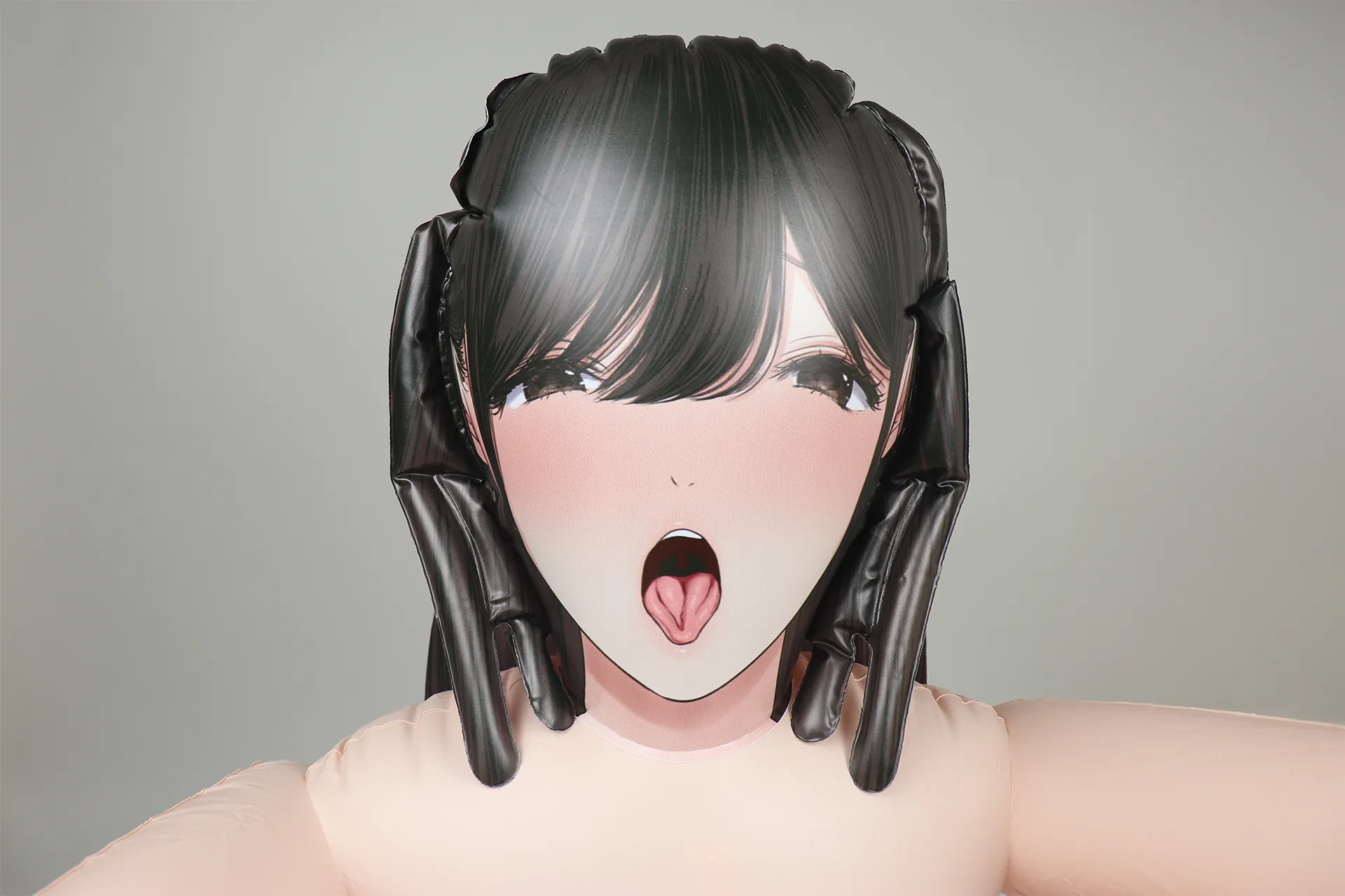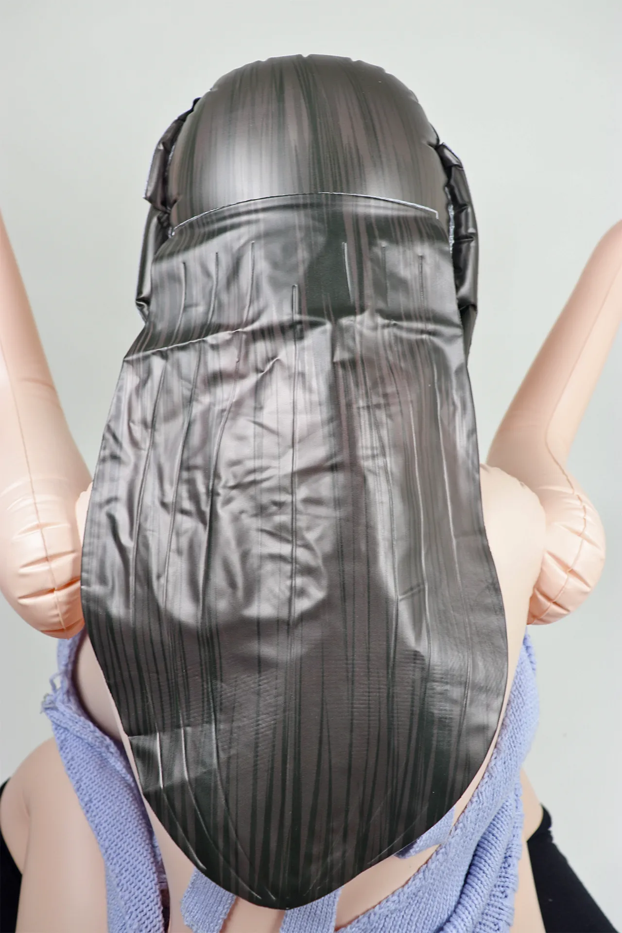 後ろの髪の毛は1枚の大きなロングヘアーを印刷したビニールがくっついています。このロングヘアーの部分は空気は入りません。