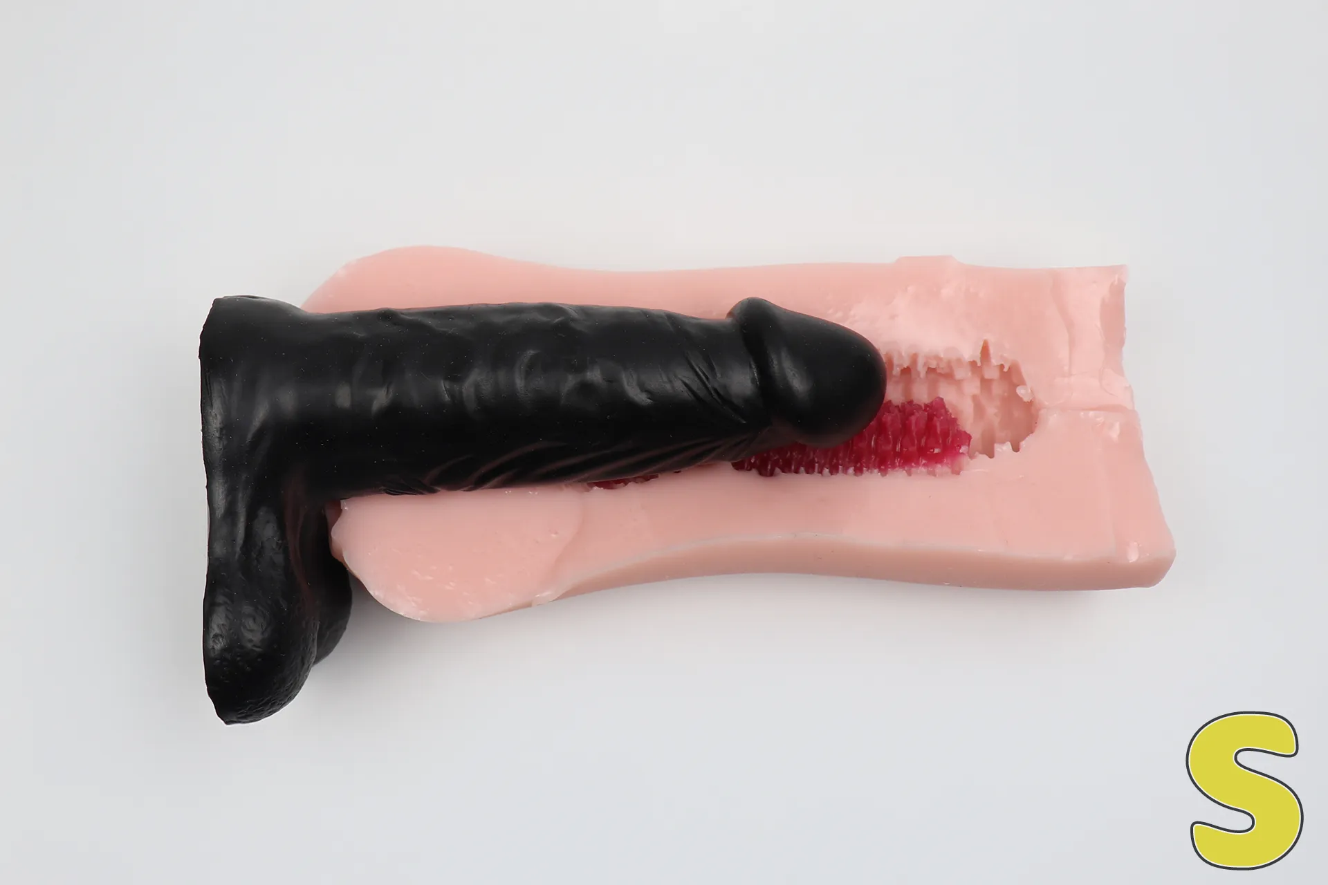 女性器を模したビラビラの中に丸穴の入口があります。入口径は約1cmでした。
