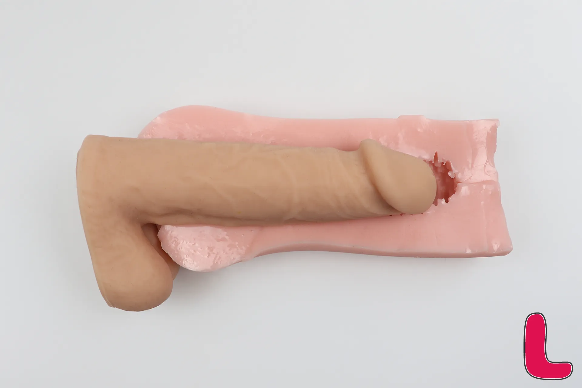素材は久々のベビータッチ素材で、しっとりとした質感の人肌っぽい素材です。柔らかさはバンジータッチとほぼ同じ位に感じますが、握った時のボディがやけに細身に感じます。それもそのはずで、407gと重量は平均クラスだけど17cmのロングボディだからです。
