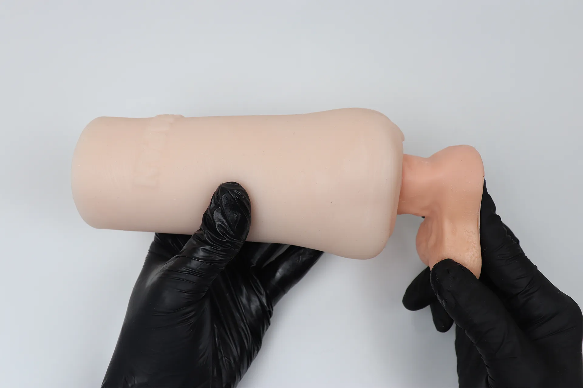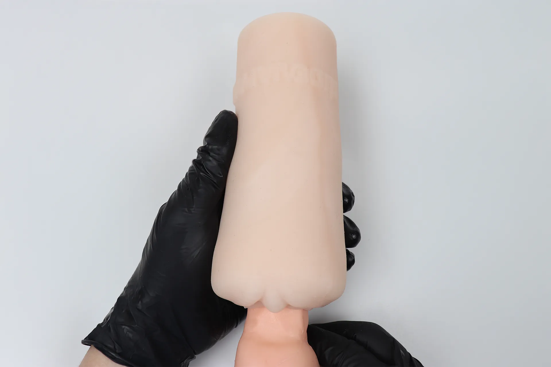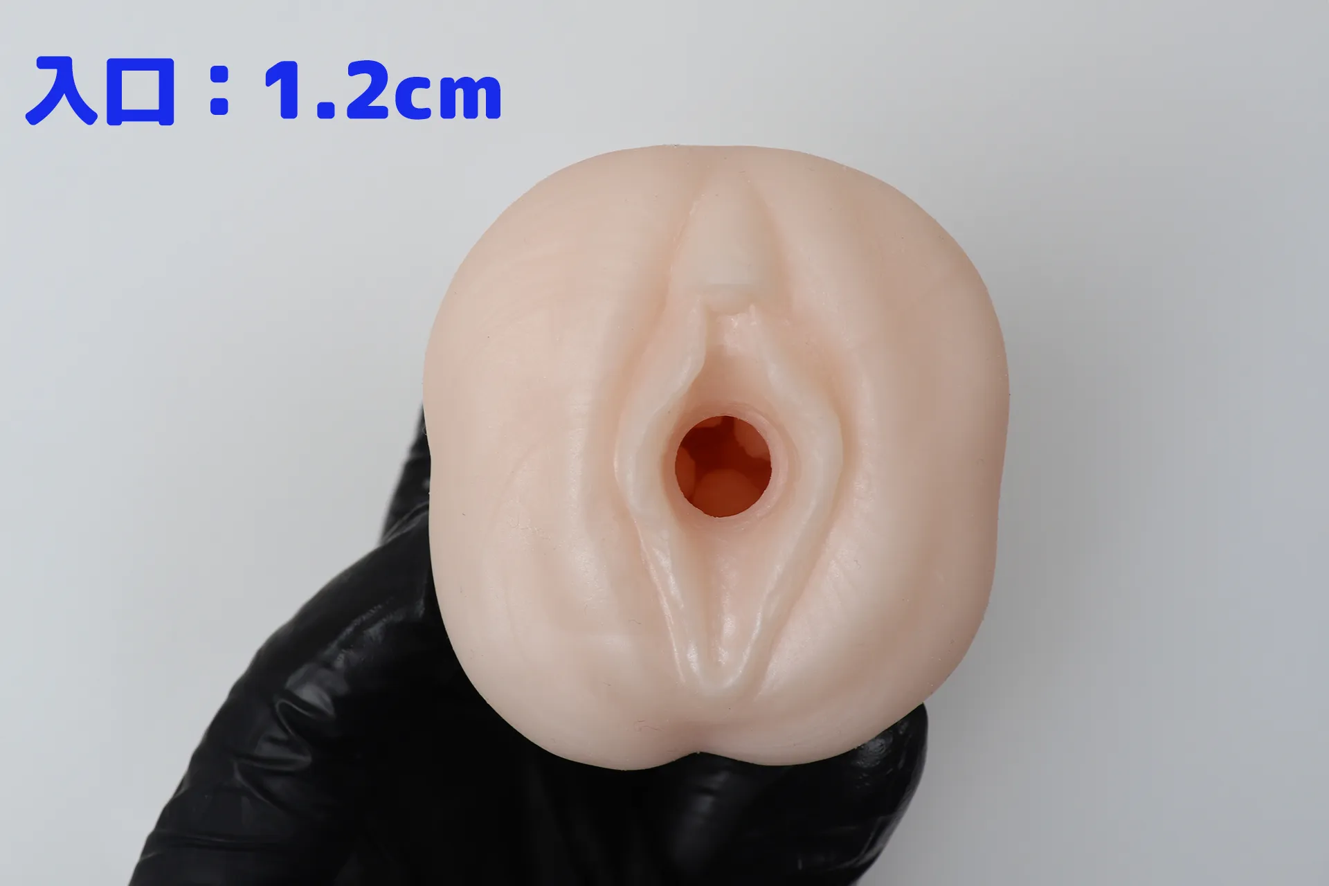 1.2cmで丸穴のシンプルな入口に、しっかりとローションを流し込み挿入を試みます。入口は固めで押し返してくる感じがありますが、頑張れば半勃起でも何とか押し込める感じです。