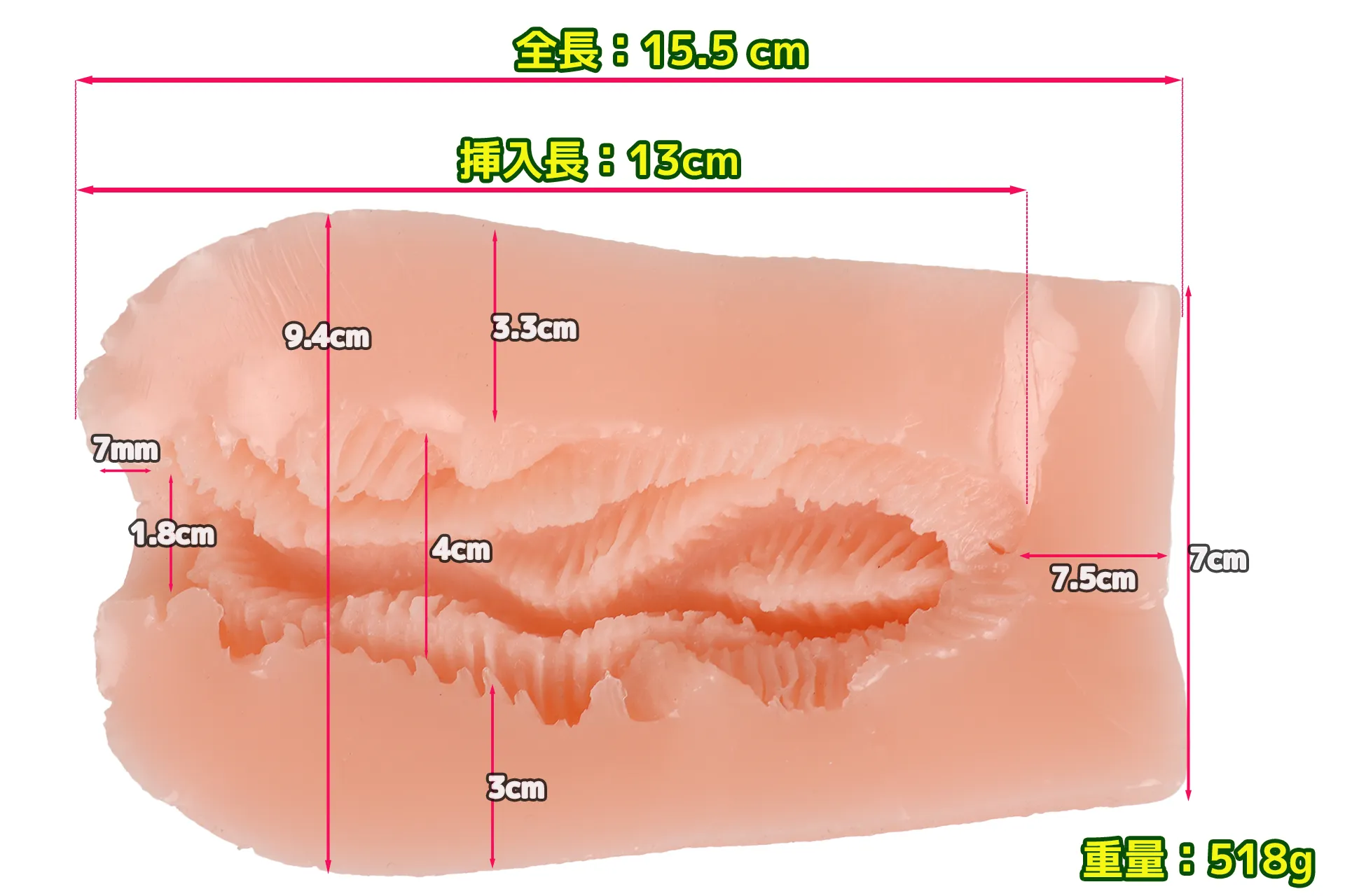 半勃起でも挿入可能なユル系の内部です。縦ヒダの痛さや鋭さは無く、舐め上げるような触手裏剣タイプの縦ヒダです。