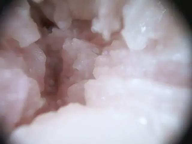 4分の1切開しました。非常にヒダが密集しているのが分かります。縦ヒダが舐め上げるようにくすぐってきます。