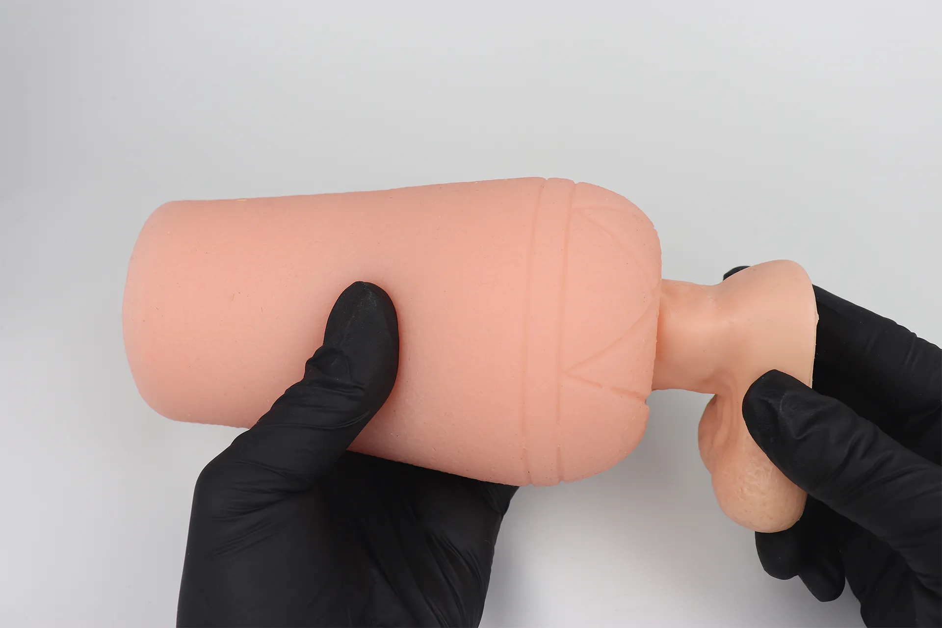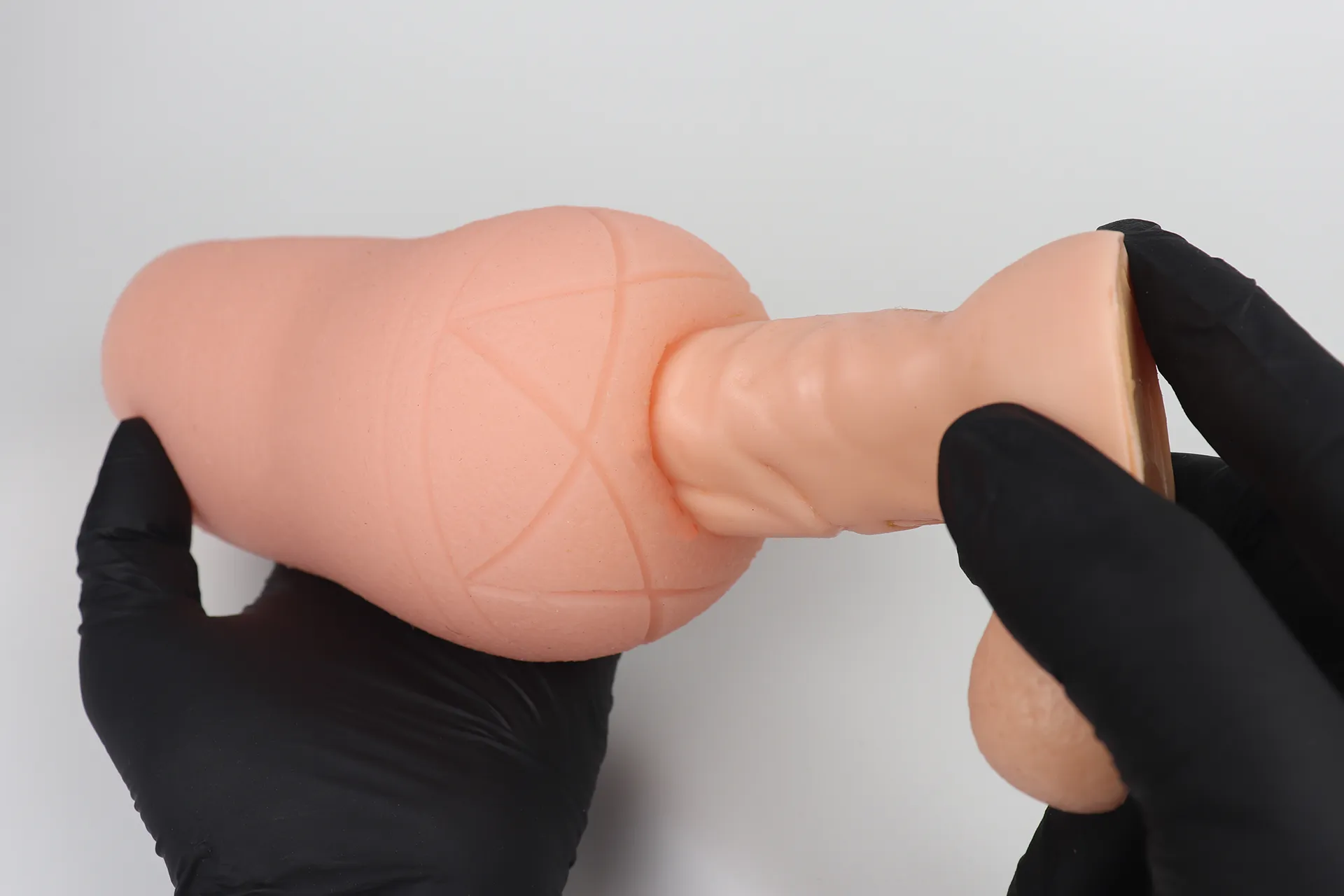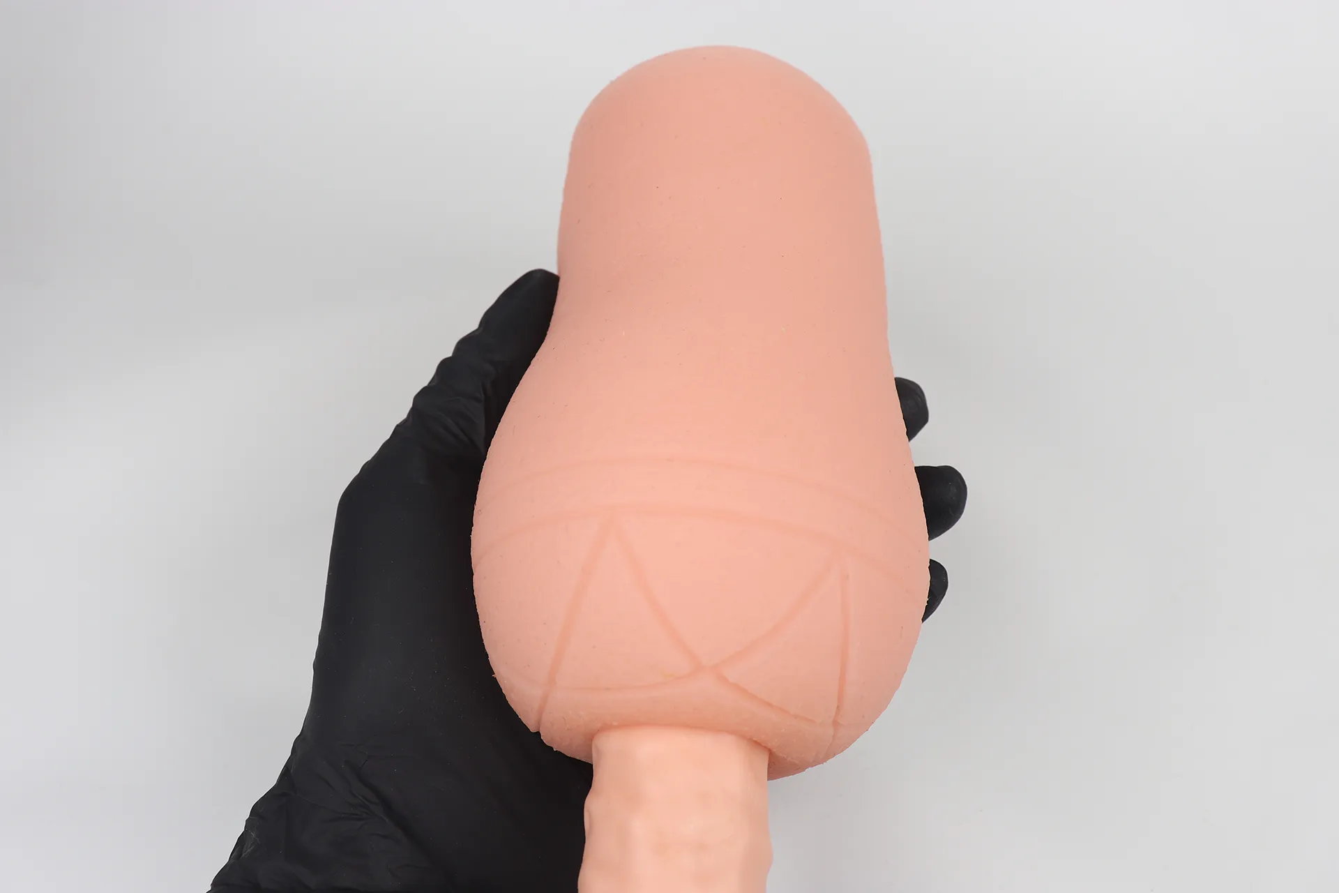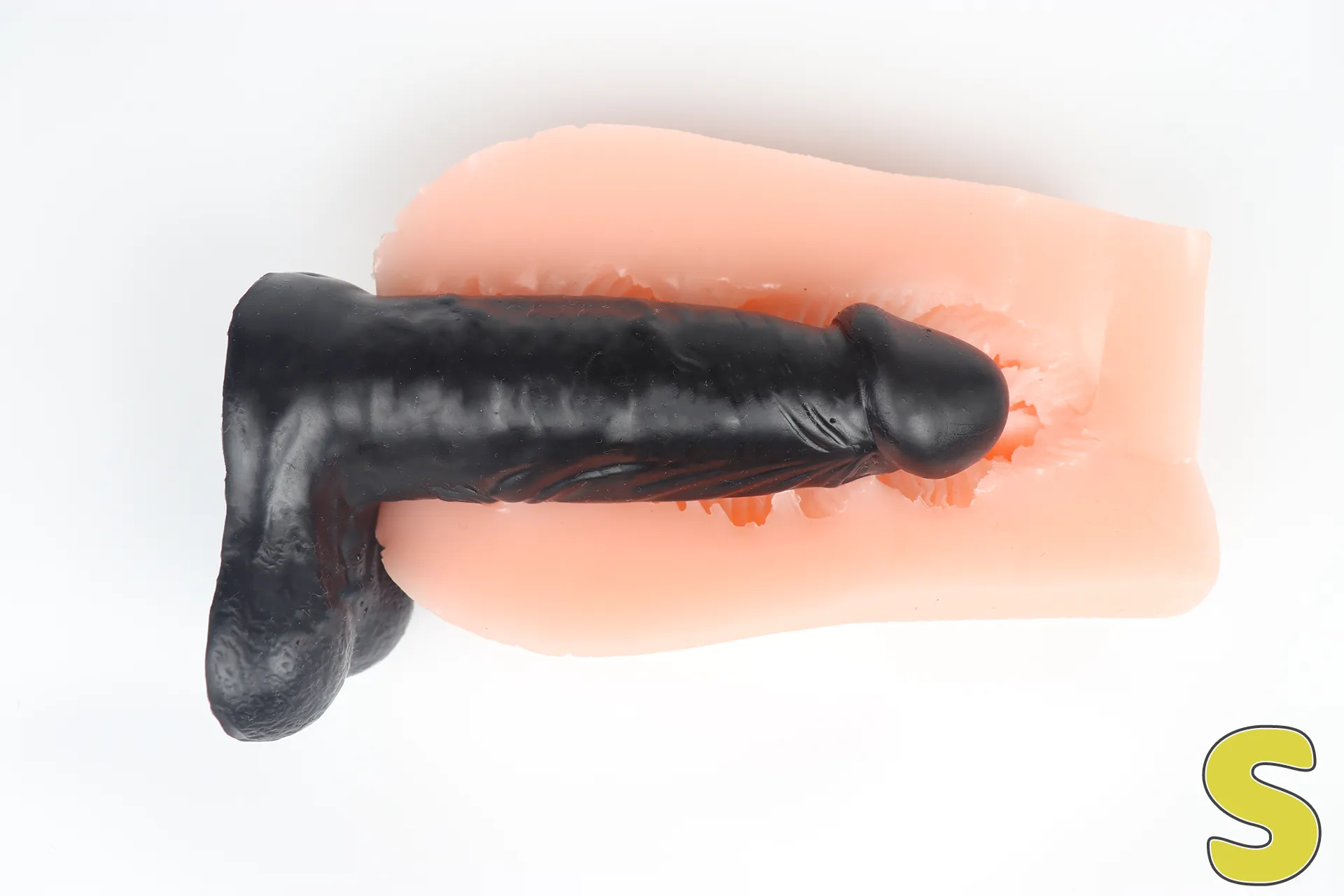 Lサイズだとほとんど突ききってはみ出してしまいました。このサイズのペニスの方は中々いないと思いますが、Lサイズでは楽しめない挿入長となっています。