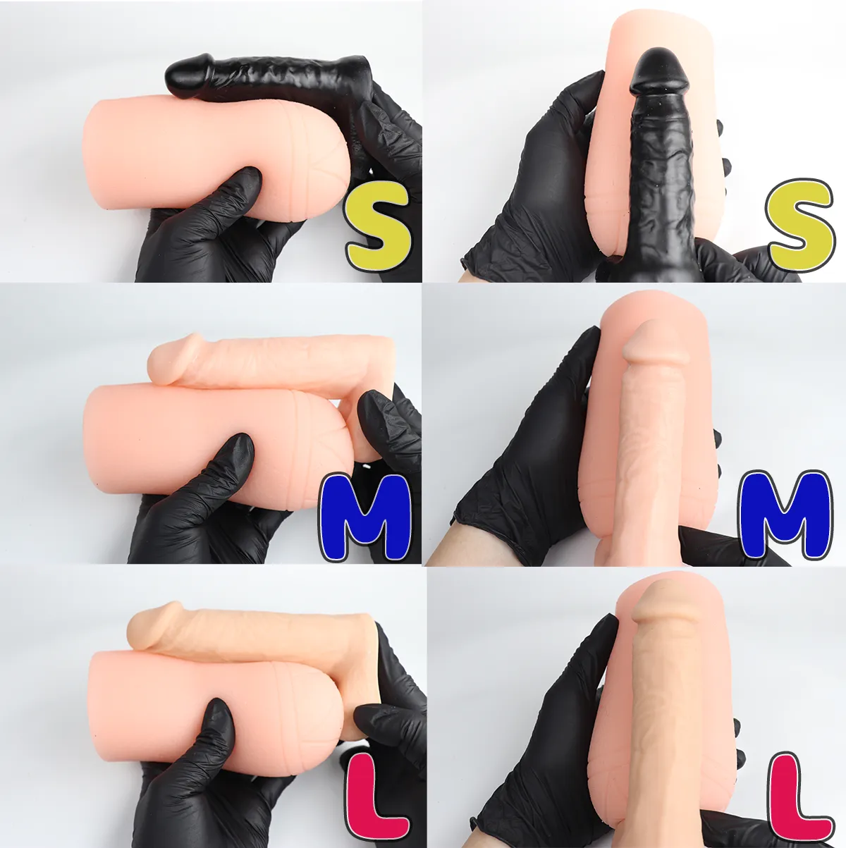 各サイズのディルドでサイズ感を比較。