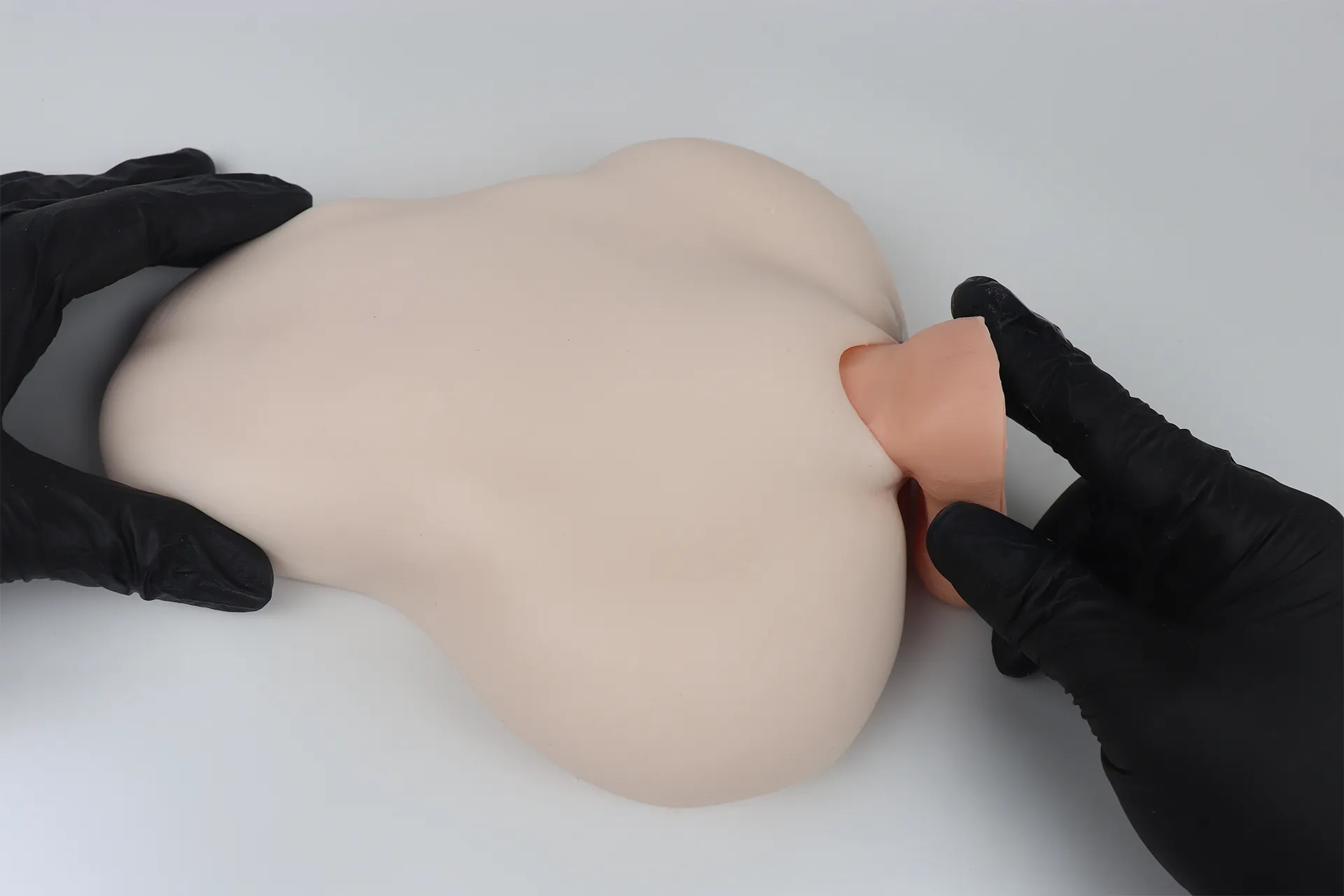 4分の1カットです。なだらかに傾斜したバナナカーブが、床オナ時にペニスを優しく導いてくれます。
