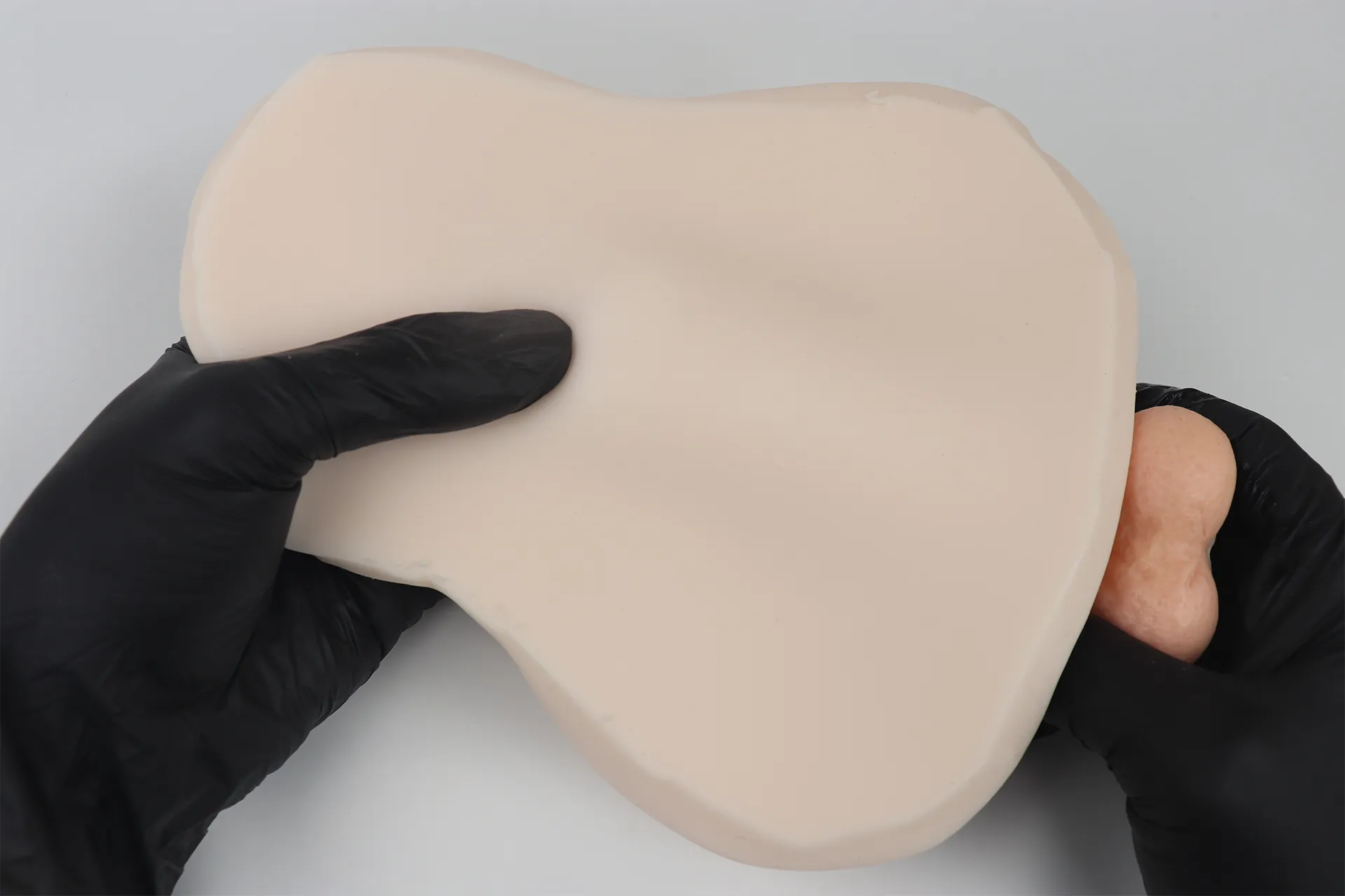 次に+1の硬度と比較してみます。サンプルが小さいので折りたたんで厚みを出して比較しましたが、やはりサキュバニーの方が弾力で勝っているように感じます。