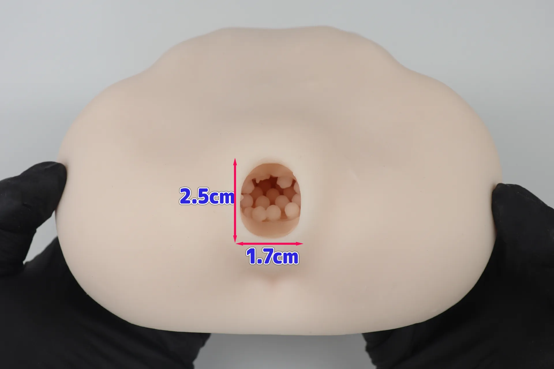 入口は縦2.5cm横1.7cmの楕円形です。裏面はおっぱいグッズのようにフラットになっています。